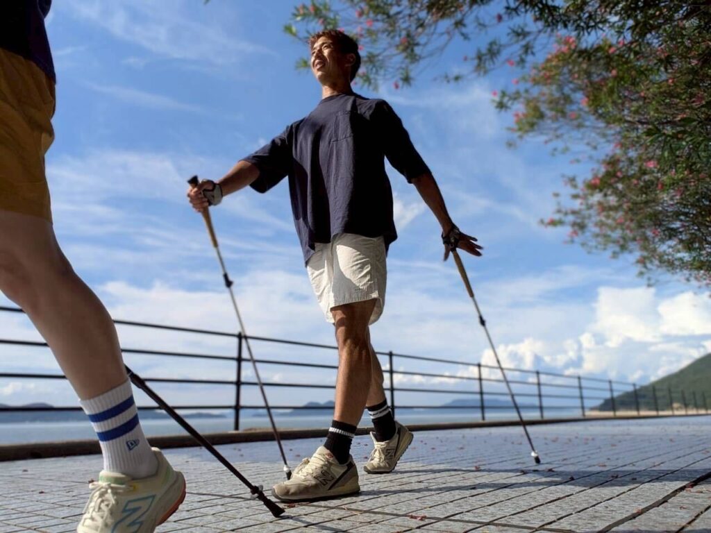 2本の専用のポールを使ったバランスの良い全身運動であるノルディックウォーキング。